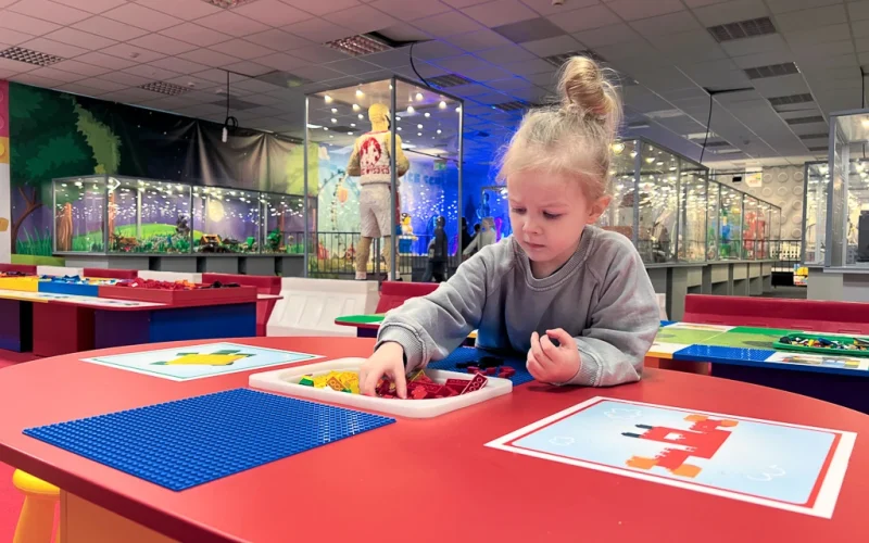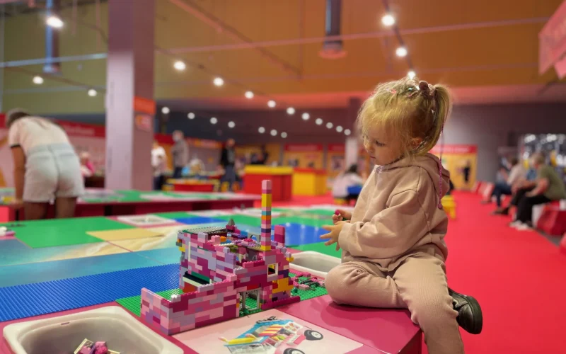 Alle casse all’altezza di 95 cm è montata una misura a forma di un mattoncino. Se il bambino passa sotto il mattoncino entra gratuitamente.